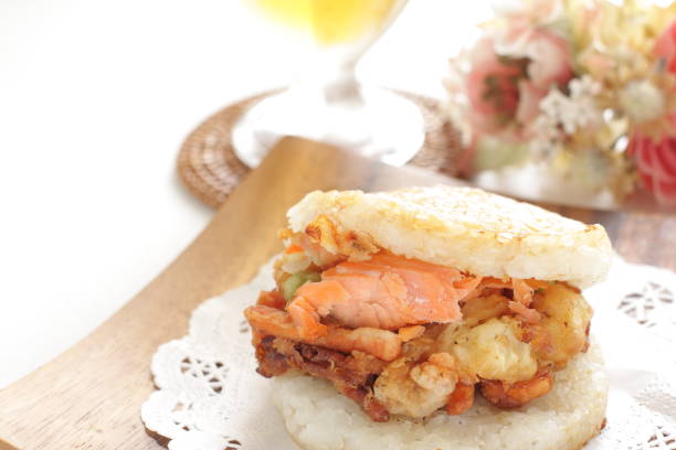 ご飯をバンズ代わりにしたユニークなハンバーガー。ライスと具材のバランスが絶妙で、食べやすく満足感も◎。季節限定のフルーツやソースをトッピングすると味の変化も楽しめます。