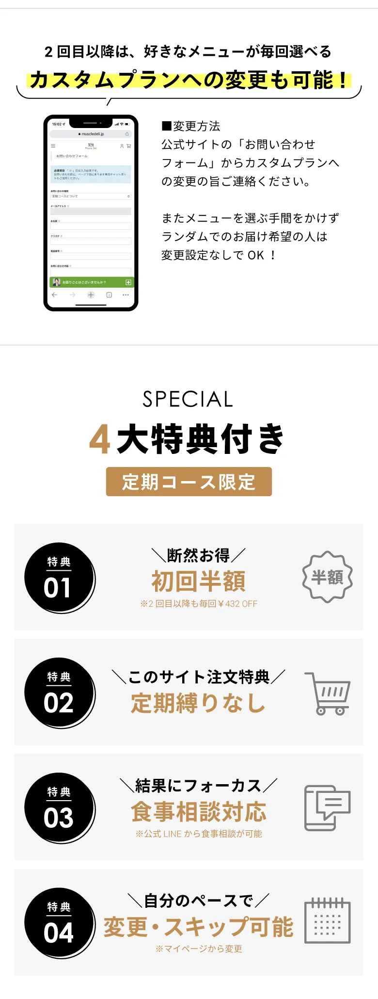 さらに、管理栄養士監修の献立なので、無理なく続けやすく、栄養面でも安心です。鶏肉や魚、野菜を中心としたバランスの良いメニューで、毎日の食事がより楽しくなります。ライフスタイルや好みに合わせて選べる多彩なプランも魅力です。