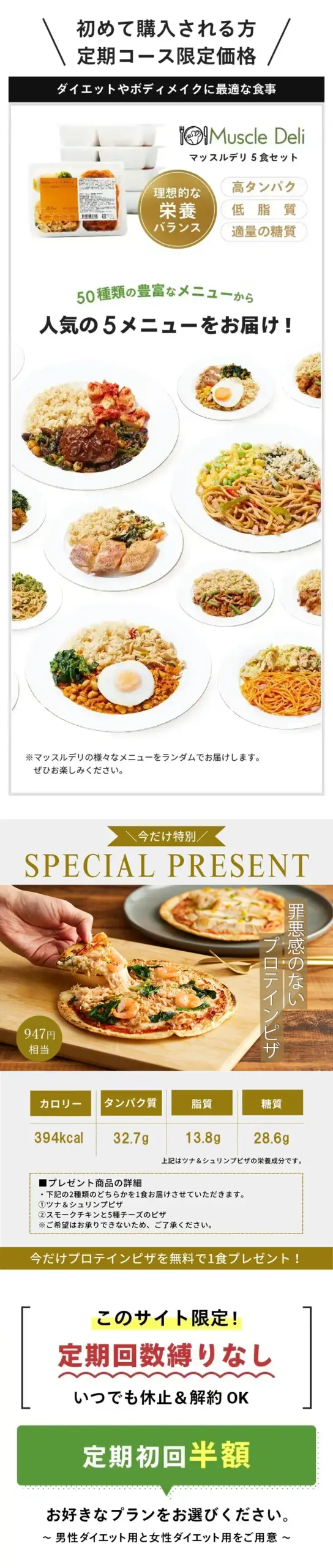 手軽さ、栄養バランス、高たんぱく、メニューの豊富さを兼ね備えた「Muscle Deli」は、健康的で理想的なカラダを目指す方にぴったりのボディメイクフードです。毎日の食事を簡単に整えることができ、忙しい方でも無理なく続けられます。日々のカラダづくりに、まずは1食から取り入れてみるのがおすすめです。