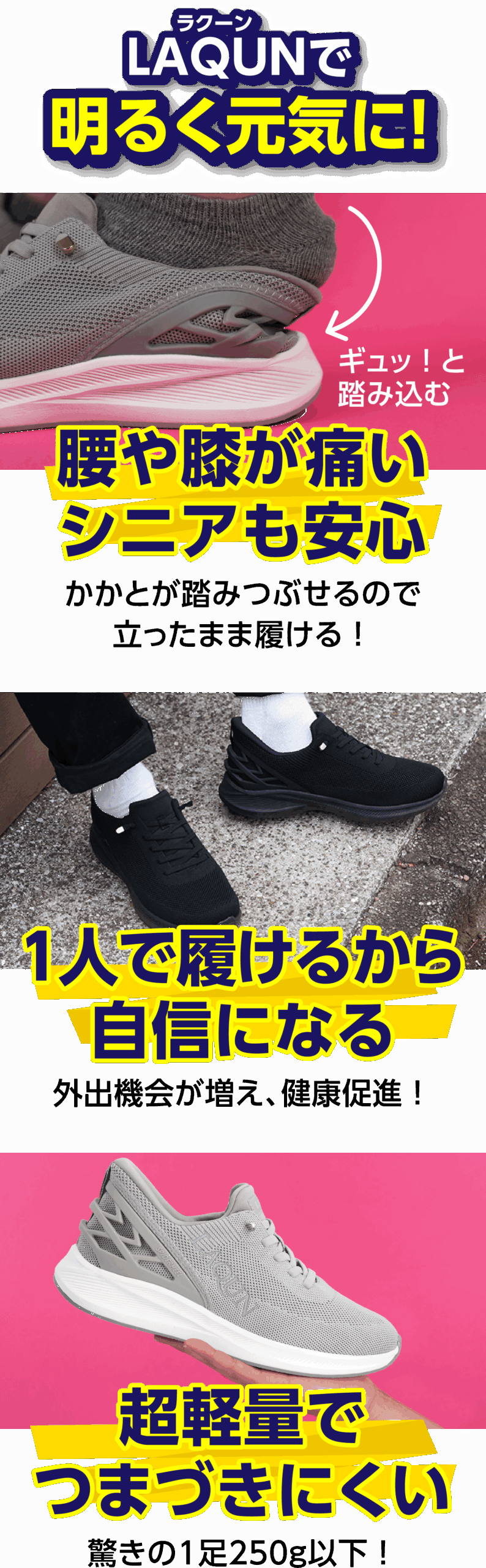 もし、毎日の靴の着脱をもっと楽に、快適にしたいと考えているなら、LAQUN(ラクーン)はまさに最適な選択です。新しいスニーカーのスタンダードを体験してみませんか?
