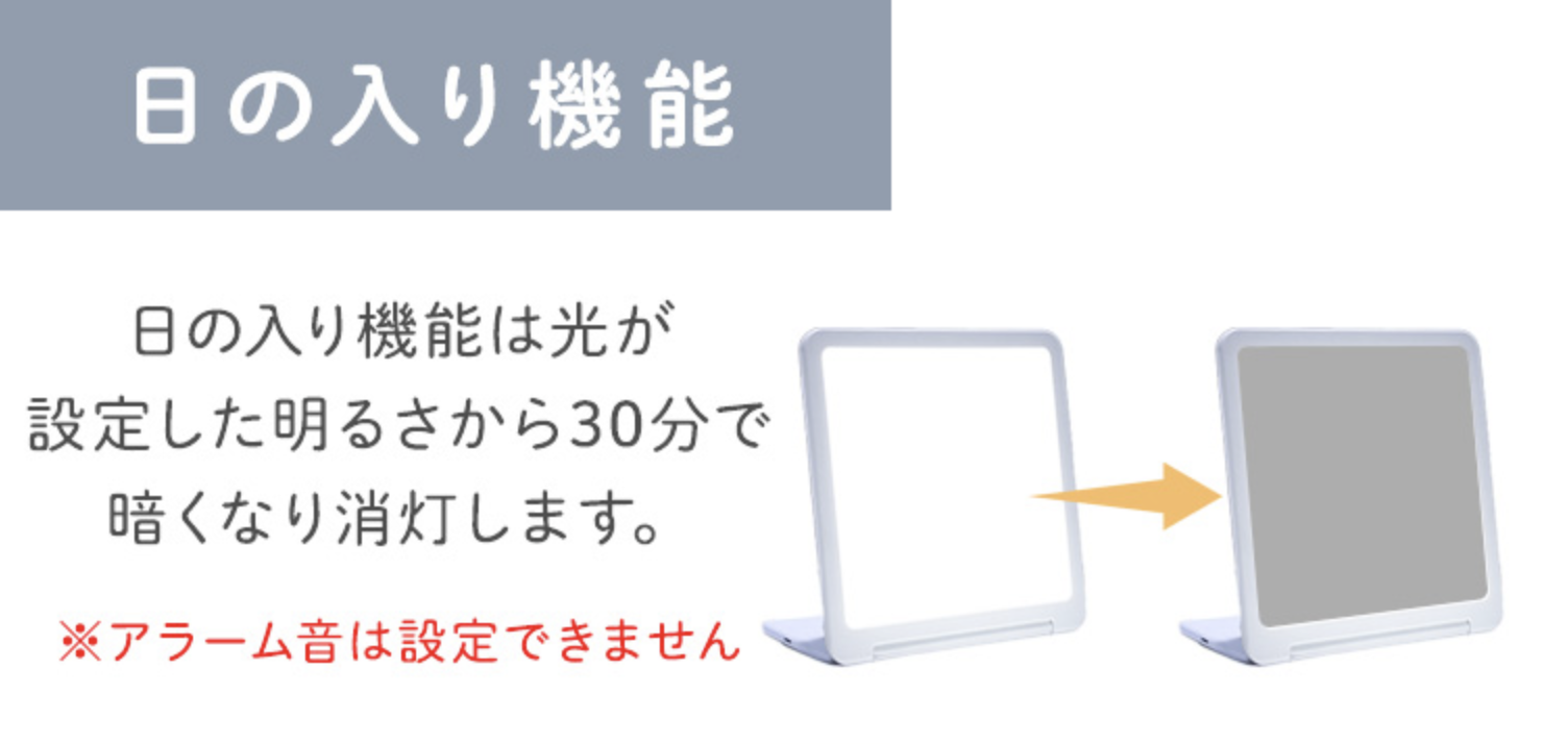 - 音が苦手な方にもおすすめ:アラーム音が苦手な方でも、光だけで自然に目覚めやすくなります。