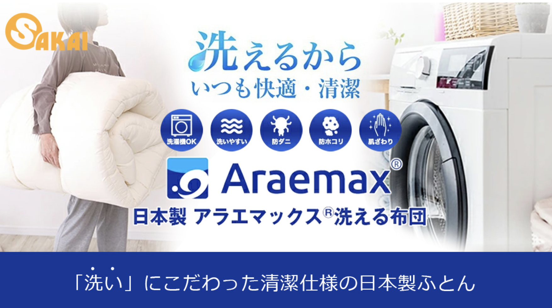 そんな悩みを解消するために誕生したのが、自宅で手軽に丸洗いできる布団・アラエマックスです。