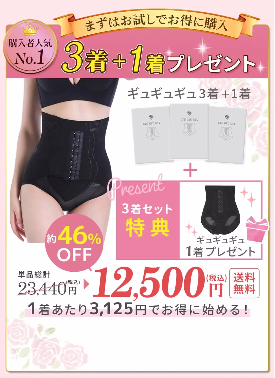 ギュギュギュは、「履くだけでスタイルアップしたい」「姿勢を整えてすっきり見せたい」という方にぴったりのボディケアアイテムです。ハイウエスト設計と段階式加圧構造でウエストラインを美しく引き締め、自然と“本物のくびれ”をサポート。日常生活に取り入れやすく、毎日のファッションをより美しく見せてくれる一枚です。