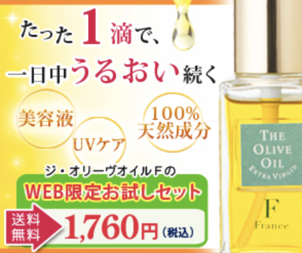 ジ・オリーヴオイル Fの最大の特徴は、高純度オリーブオイルに加え、美肌成分をバランス良く配合している点です。オリーブオイルは、肌に潤いを与えるだけでなく、抗酸化作用が高く、外的刺激や乾燥による肌ダメージから守る働きがあります。また、皮脂に近い成分構造のため、肌なじみが良く、べたつかずにしっとりとした仕上がりが実現します。