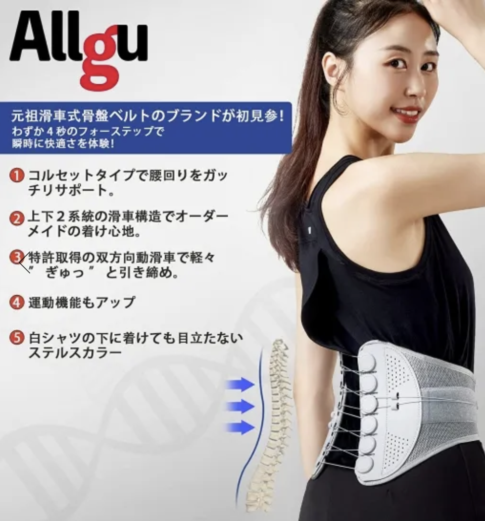 「Allgu(オールグゥ)」は、独自の滑車式構造を採用した骨盤ベルトとして、多くの利用者から注目されているアイテムです。