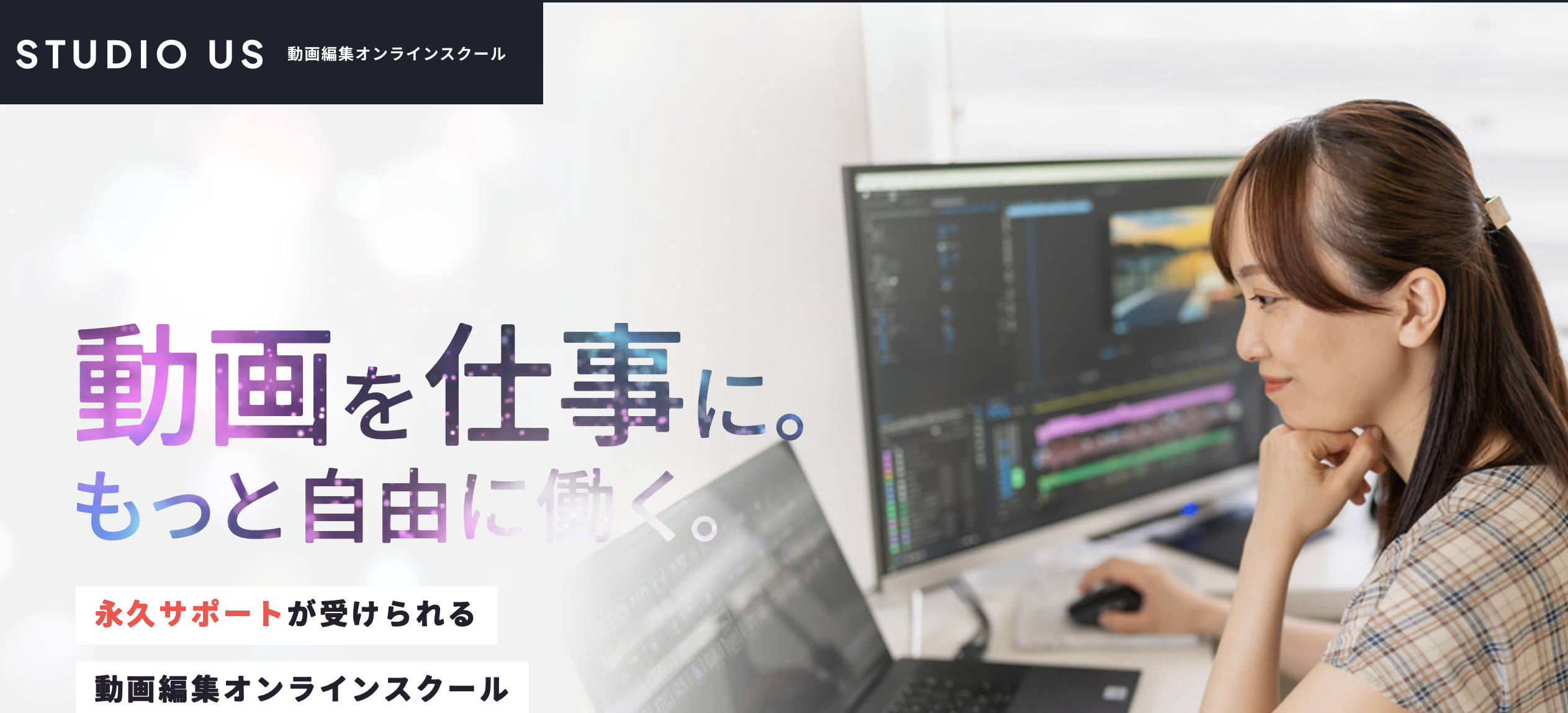 studio US(スタジオアス)は、SNS動画編集に特化したオンラインスクールです。