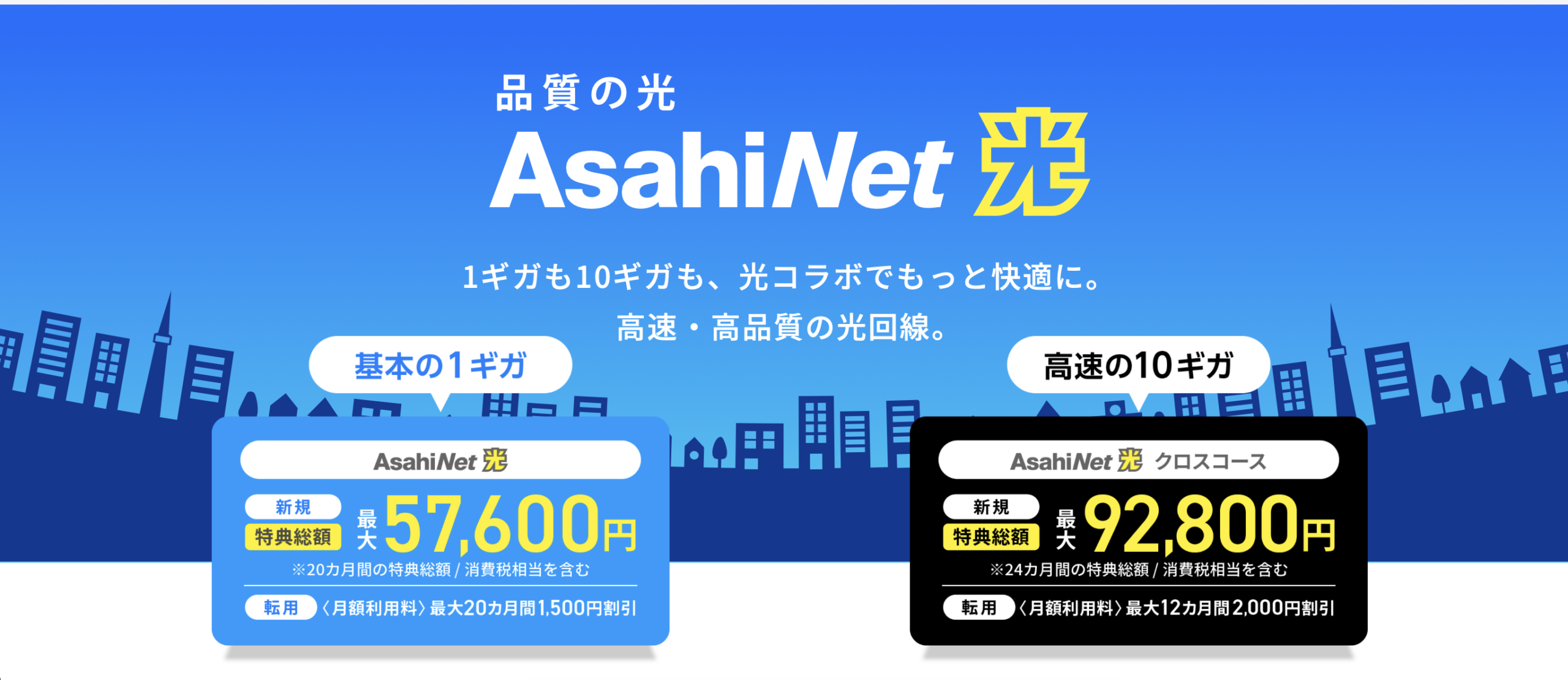 AsahiNet 光(ファミリーコース・クロスコース)は、快適で安定したインターネット環境を提供する光回線サービスです。