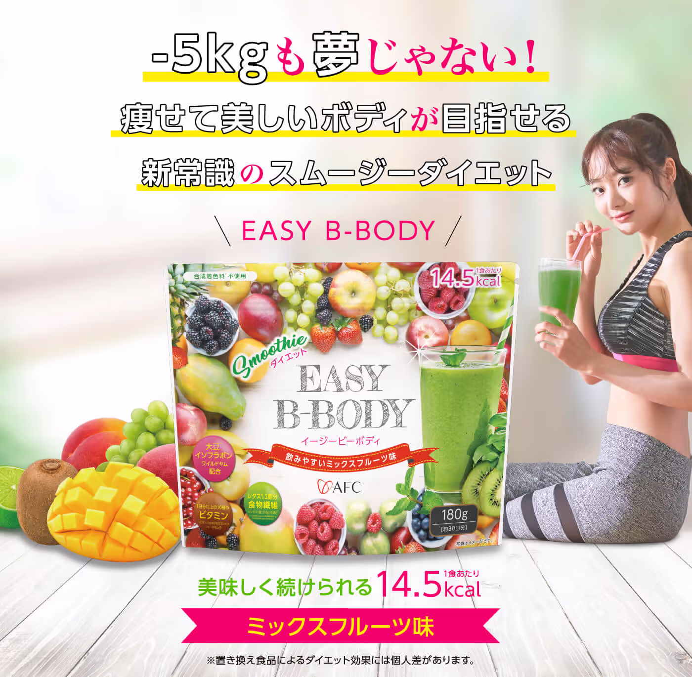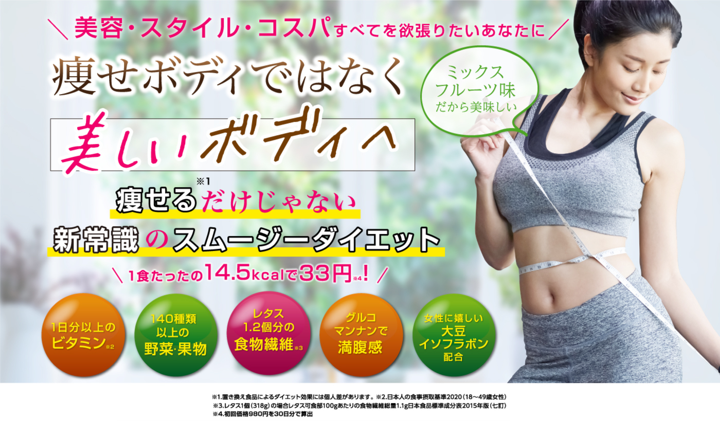 【EASY B-BODY(イージー・ビーボディ)】は、「体重を落とすこと」だけにフォーカスしない、新しい発想のダイエットスムージーです。