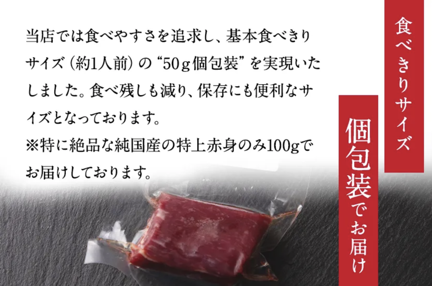 また、馬刺しは食べたい分だけ解凍できる小分け包装。