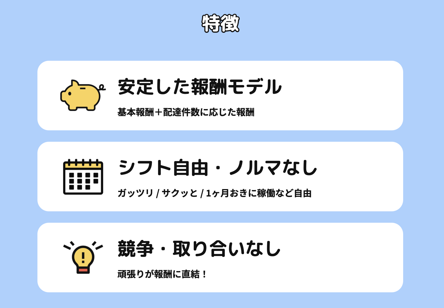 個人事業主として働きながらも、シフト制によって稼働の見通しを立てやすい点が特徴です。