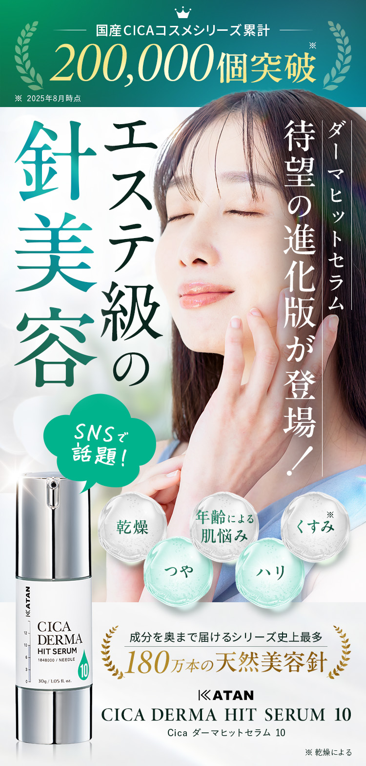 SNSを中心に「肌が変わる」と話題を集めている美容液、KATAN Cica ダーマヒットセラム10をご存知でしょうか。日々忙しく過ごす中で、肌荒れや乾燥、キメの乱れに悩む方は少なくありません。そんな現代人の肌悩みに寄り添い、進化を遂げたのがこのセラムです。