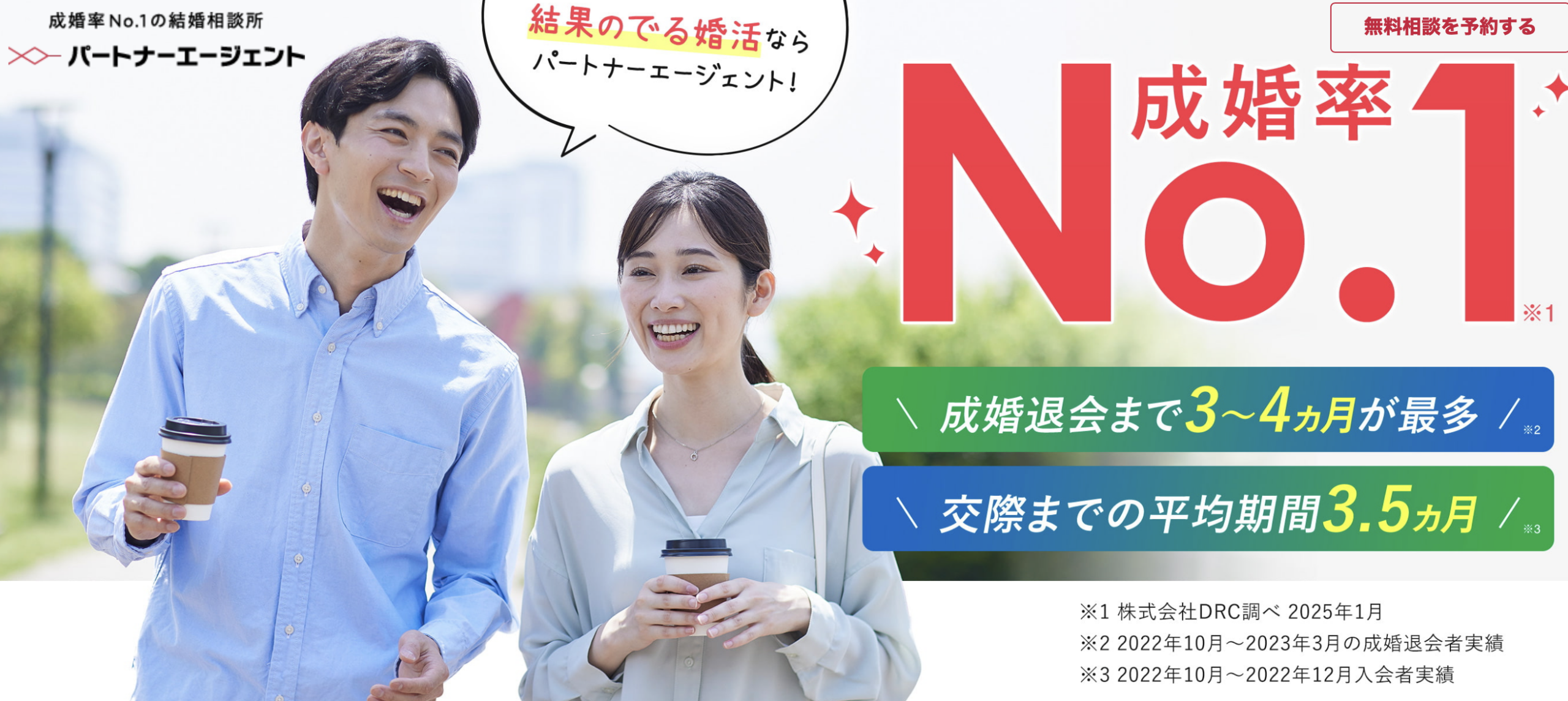 婚活なら結婚相談所パートナーエージェントは、結婚を真剣に考えている男女を対象とした結婚相談所サービスです。