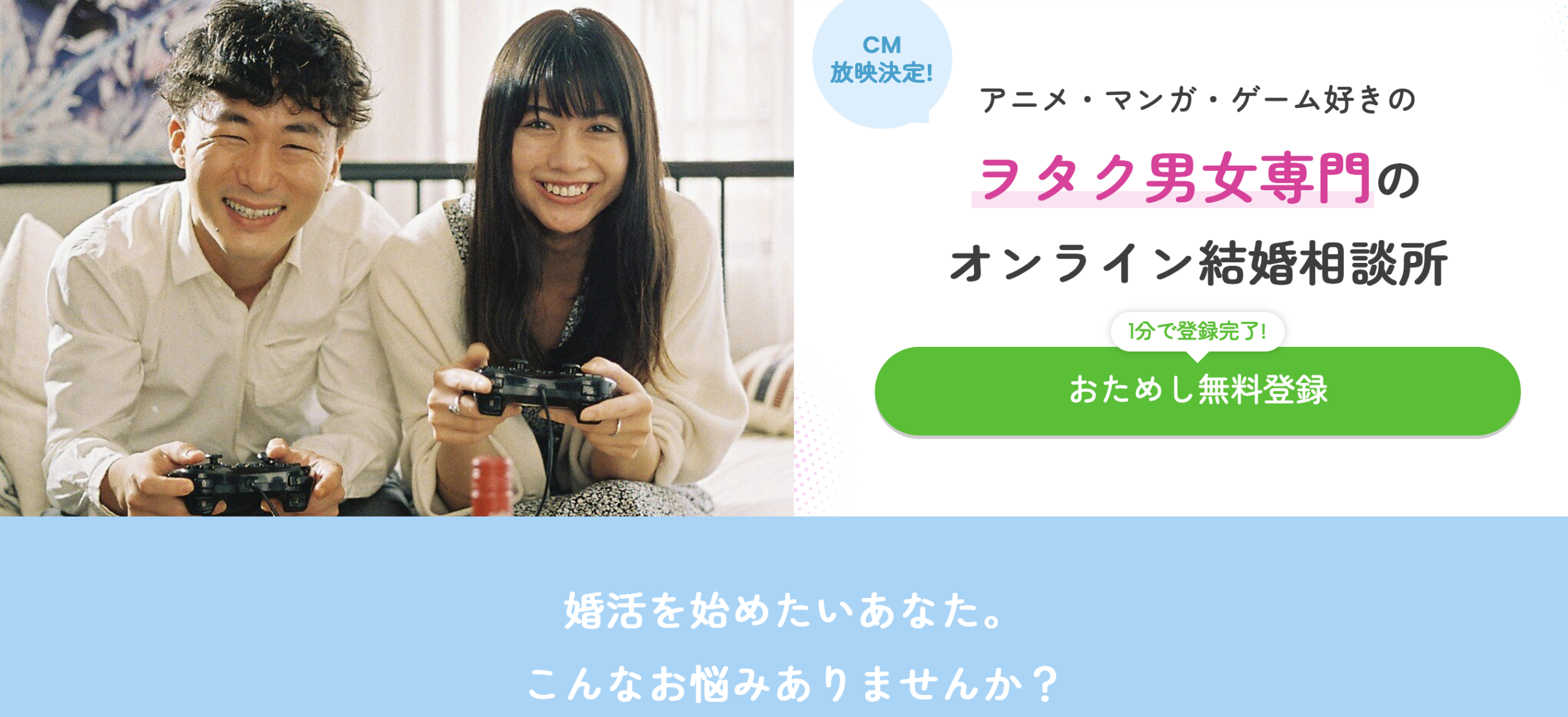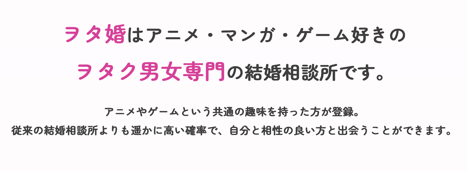 ヲタ婚は、アニメ・マンガ・ゲームなどの趣味を持つ男女を対象とした、結婚相談所型の婚活サービスです。
