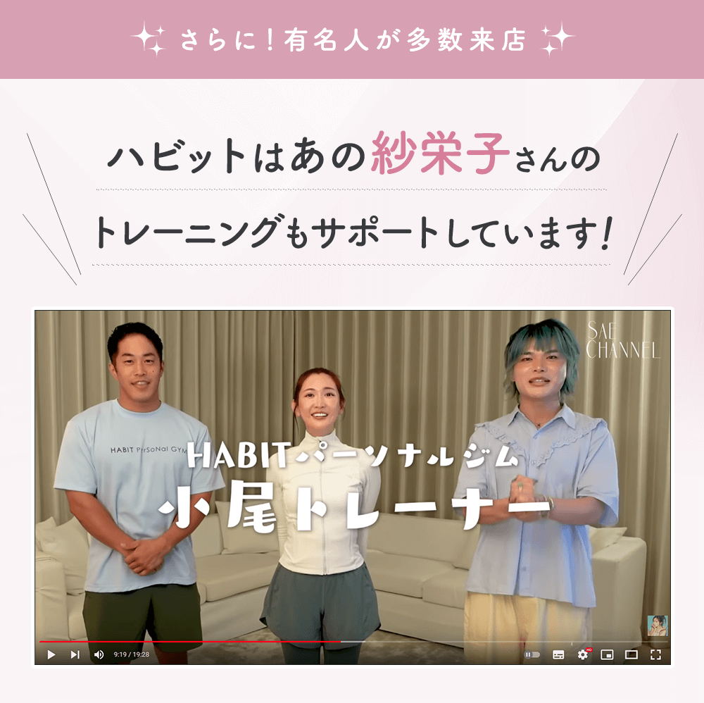 ハビットパーソナルジムが多くの人に支持される理由は、単なるトレーニングだけではありません。モデルの紗栄子さんが体現されているような「健康的で美しいライン」を作るために、生理学に基づいた独自のプログラムを提供しているからです。
