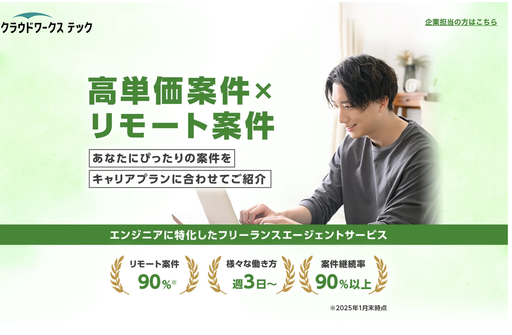 クラウドワークス テック(CrowdWorks Tech)は、日本最大級のクラウドソーシングサイトを運営する株式会社クラウドワークスが提供する、フリーランスエンジニア・デザイナー特化型の求人紹介エージェントです。