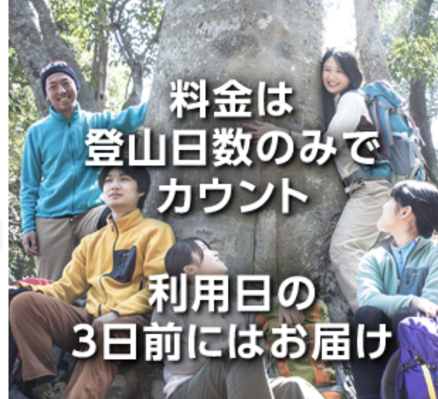 基本料金で3泊4日のレンタルが可能なため、登山の前日に受け取って、余裕を持ってパッキング。登山を楽しんだ翌日にゆっくり返却、といったスケジュールが組めます。