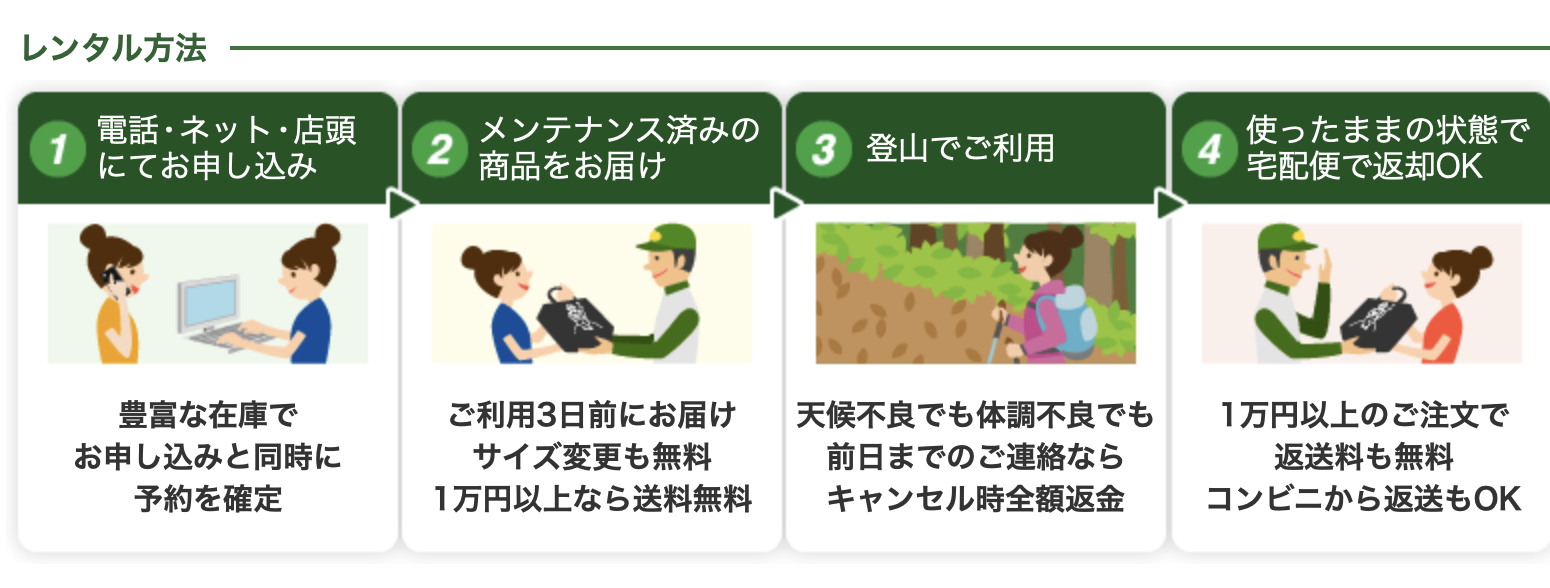 ① フルセットレンタルで手ぶら登山
